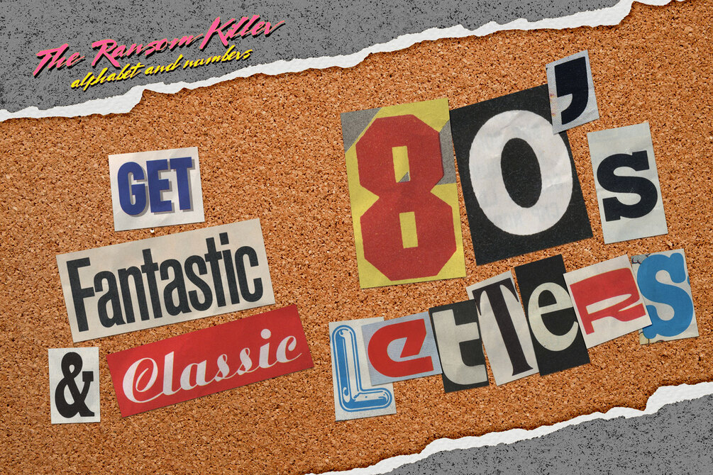 Ransom's Killer Alphabet and Numbers includes everything you need to create art based on authentic Ransom Notes in the best 80s style. All cutouts were sourced 100% from magazines published between 1980 and 1989, originally scanned at 600 dpi, edited in Adobe Photoshop and re-sharpened using AI.